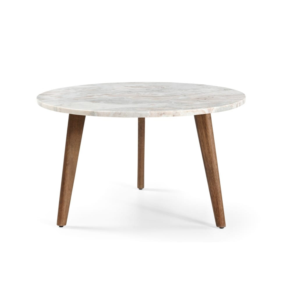 Stolik kawowy MODENA Ø70 – szary marmur i drewno mango