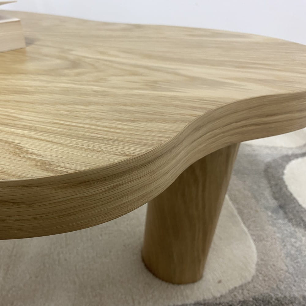 Stolik kawowy NUBE z forniru dębowego – organiczny kształt, nogi z litego drewna