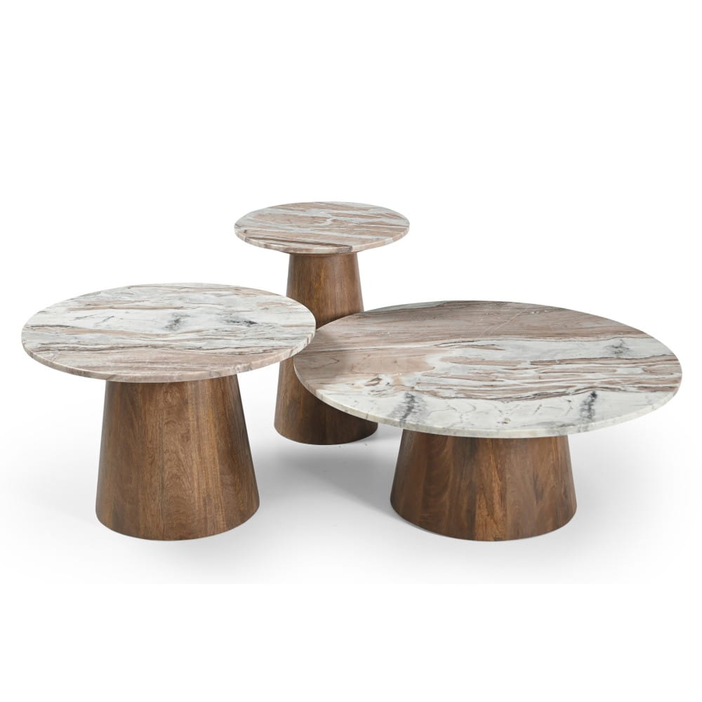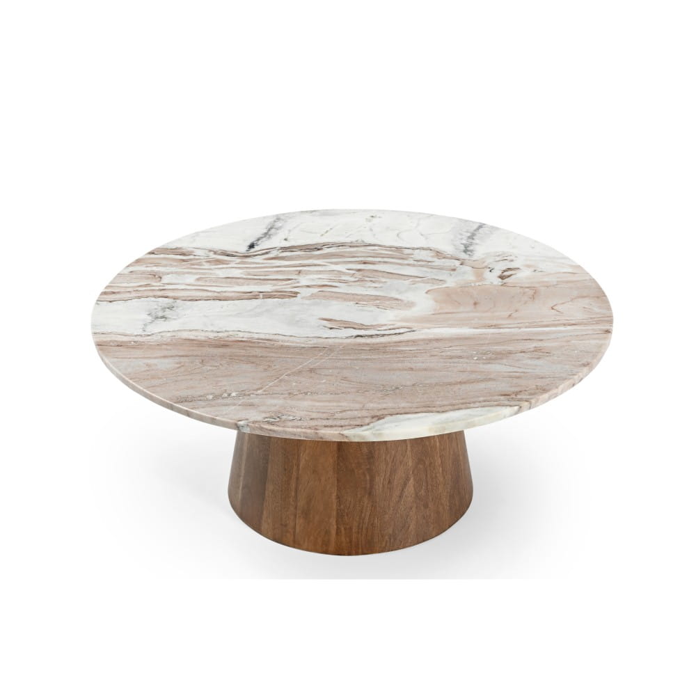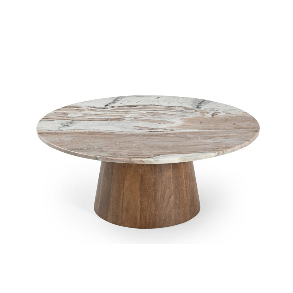 Stolik kawowy TRENTO fi 80 cm – marmur i drewno mango