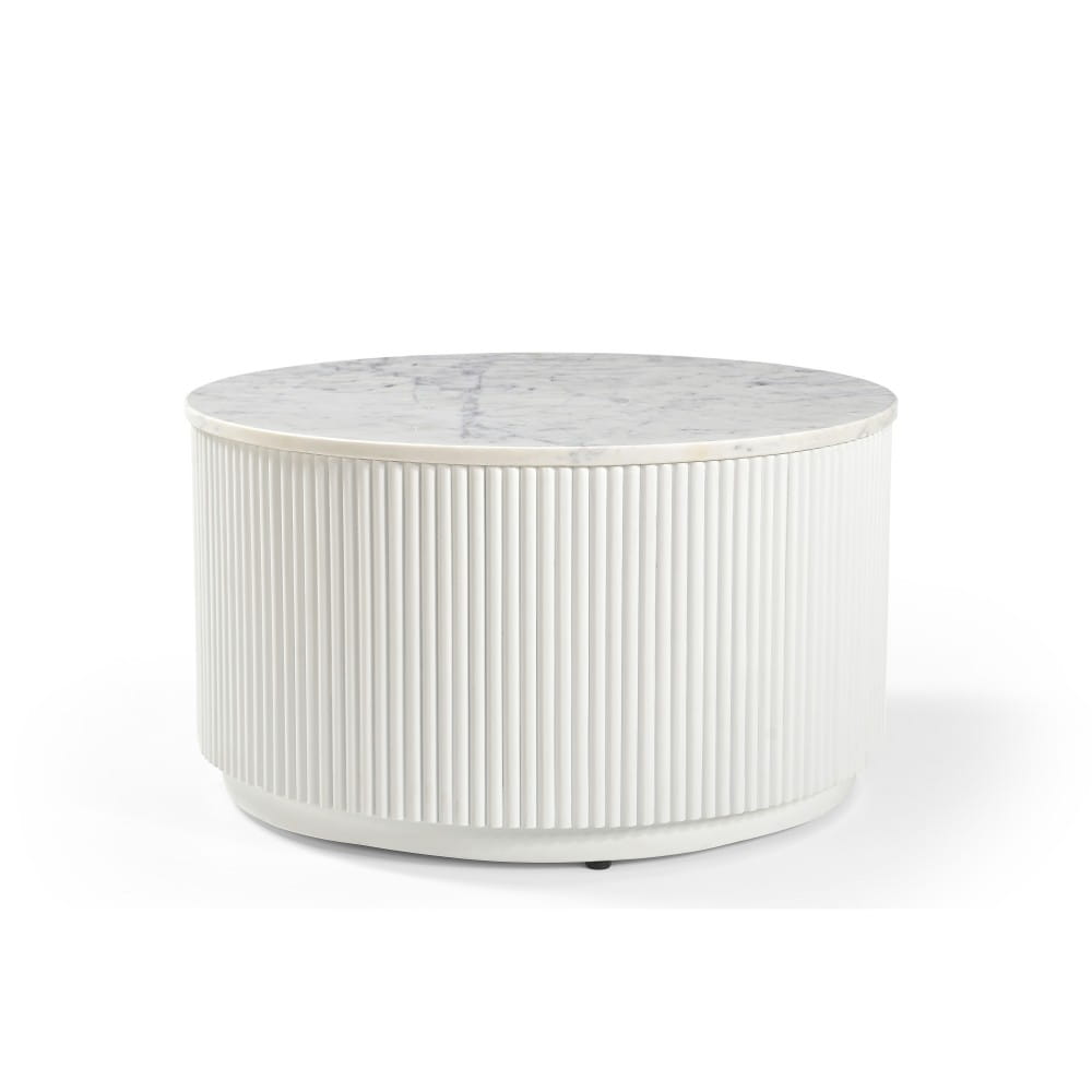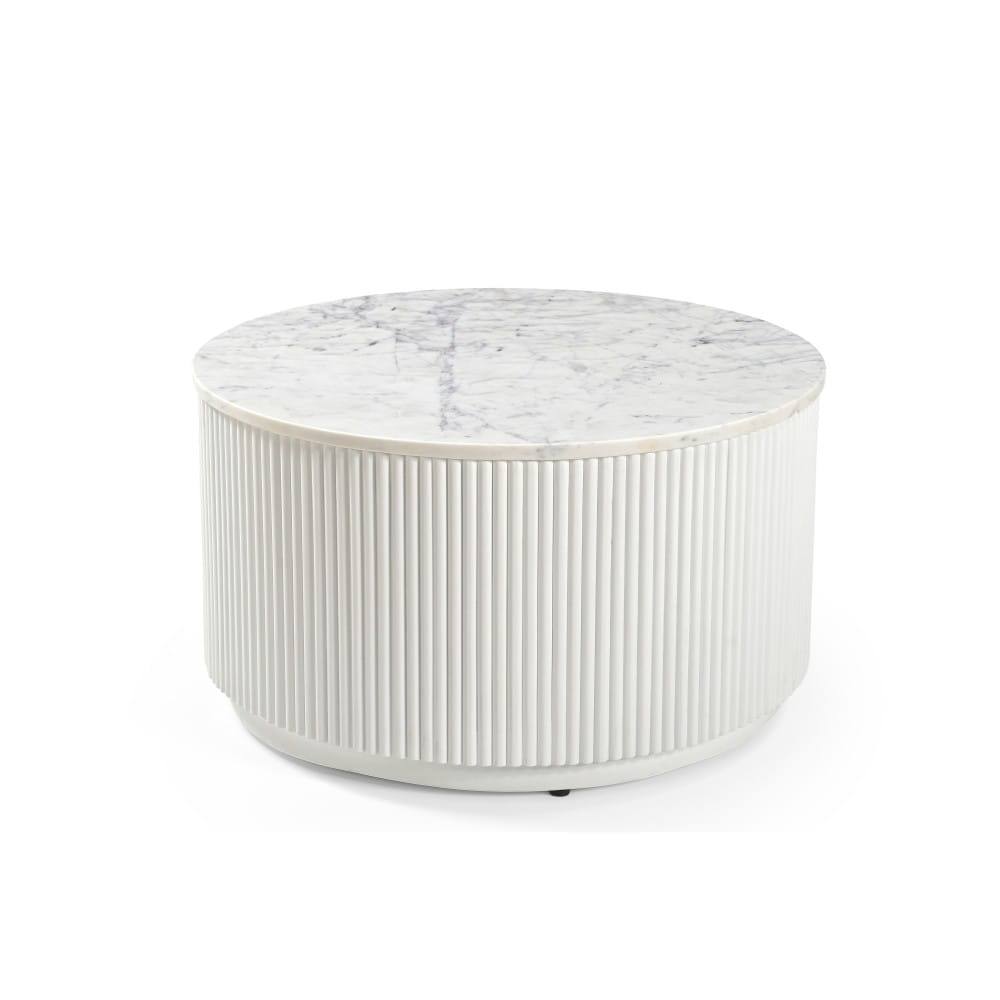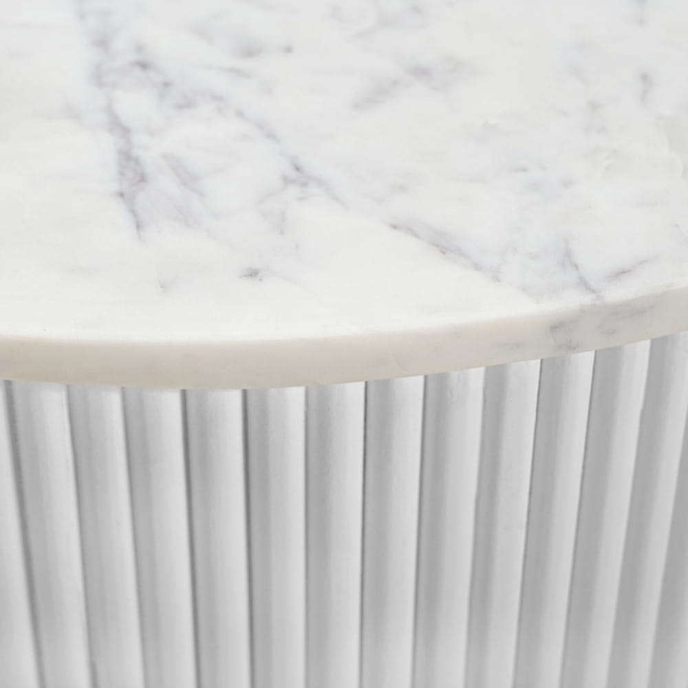 Stolik kawowy TREVISO – biały marmur i białe drewno