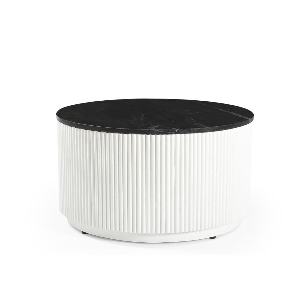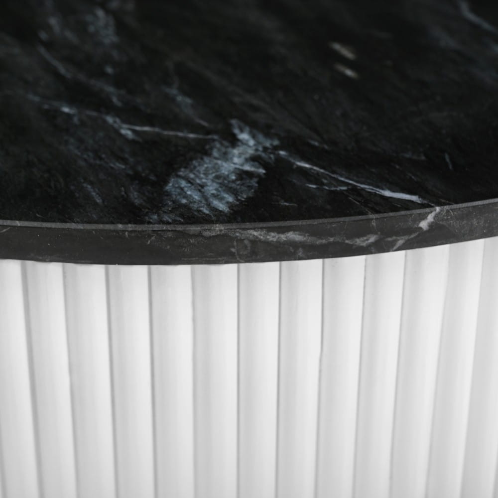 TREVISO — czarny marmur (poler) i biała, ryflowana podstawa. Okrągła forma, elegancja art déco, handmade.